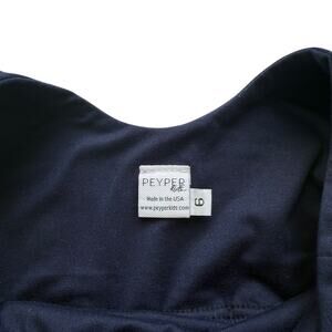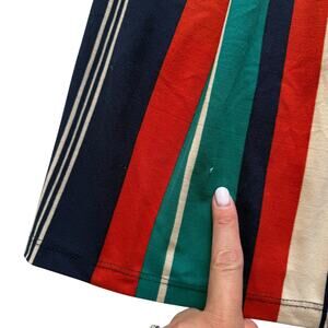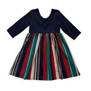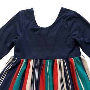 Peyper Kids brand navy and multi color stripe swing dress. 3/4 sleeves. Made in the USA. Super soft and stretchy. A small pull on the front right side (see last pic), otherwise in great condition.