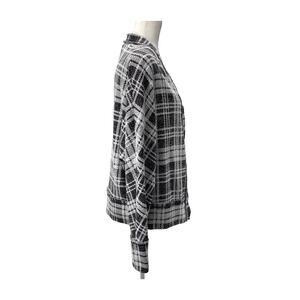 Peyton Jensen Black White Plaid Open Front Cardigan Sweater Women’s Medium