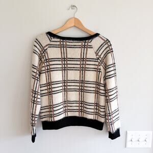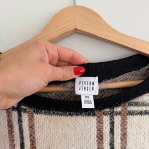 Peyton Jensen Evereve Plaid Metallic Sweater Black Cream XS