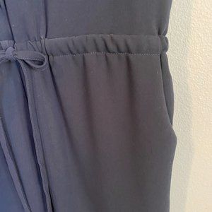 Gently used Peyton Jensen Jumpsuit. Navy blue and size small. Button front detail with drawstring cinch waist. Side and back pockets. Small cuff on bottom that sometimes will unfold. Small cut on right front cuff. Great workwear outfit.