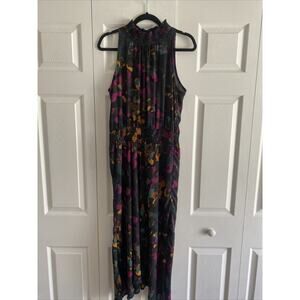 Peyton Jensen Womens Large Black Floral Maxi Dress Sleeveless Smocked Waist