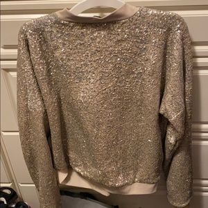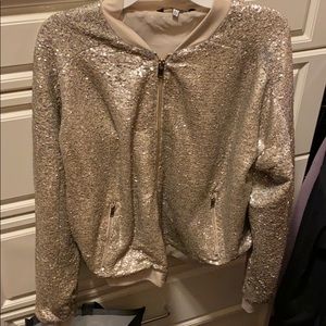 Peyton Jensen gold Sequin bomber jacket size small super adorable on with a cami under and jeans. In excellent condition maybe wore once.