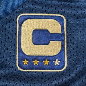 Blue with white stripes and silver numbers - everything on this jersey is embroidered/stitched - absolutely outstanding. Captains patch and Super Bowl 44 logo. Must have for any Peyton Manning fan.