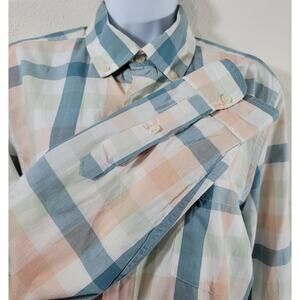 Peyton & Parker Blue Pink Check Button Up Top Medium Lightweight Soft Collard