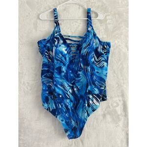 Peyton & Parker Blue Swirl One Piece Swimsuit 3X Beach Pool Summer