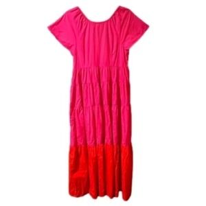 Peyton & Parker Pink Ruched Tiered Maxi Sundress with Scoop Neck, Small