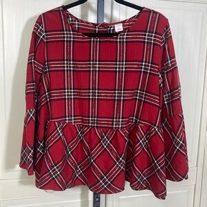 Peyton & Parker Women’s Peplum Blouse Red & Black Plaid Size Large