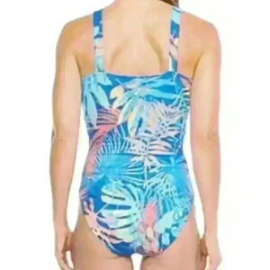 Peyton & Parker blue colorful palm frawn floral print one piece sz xxl 20/22
