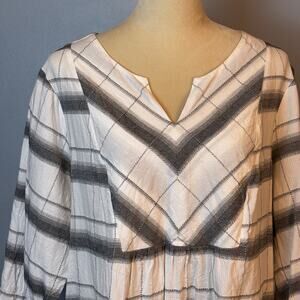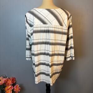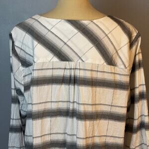 Peyton Primrose Gray White Plaid Popover Tunic Flowy & Light 3/4 Sleeve Size 2X