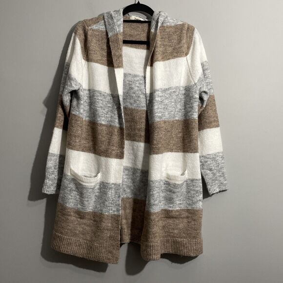 Peyton Primrose Striped Hoodie Sweater Cozy Knit Cardigan, Size Large