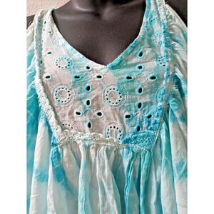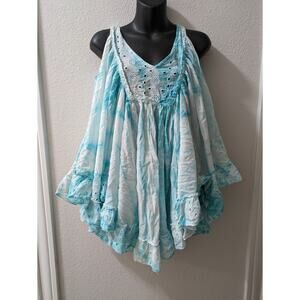 Pezzi Pazzi Blue White Boho Made in Italy Flowy Oversized Top Feminine Romantic