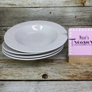 Pfaltzgraff AUTUMN LEAVES White Raised Leaves Large Rimmed Soup Bowls Set of 4