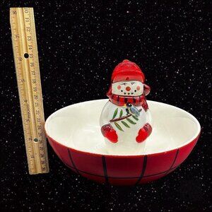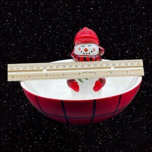 Pfaltzgraff Camp Jingles 2009 Snowman Dish Candy Dish W Snowman Inside 6”T 7.5W