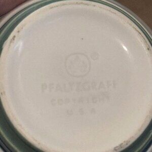 This set of Pfaltzgraff cups features a classic white design with subtle blue trim and a green base, ideal for everyday use.