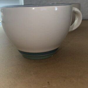 Pfaltzgraff Ceramic Cups Set Of 5 White With Blue Trim & Green Base