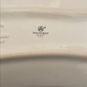 EUC Pfaltzgraff Christmas serving plate approximately 10” long by 5 1/2” wide. White with green trim. Teddy bear, candy cane, bow design and red and green holly design. No chips or cracks. Slight marks on back that will not be noticeable when using. Made in the USA 🇺🇸