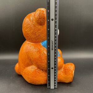 Add a touch of holiday cheer to your kitchen with this delightful Pfaltzgraff Christmas Teddy Bear Cookie Jar! This charming cookie jar is perfect for storing your favorite holiday treats and will bring a smile to everyone's face. The adorable teddy bear design and festive colors make it a wonderful addition to your Christmas decor. It will be a great centerpiece for your holiday parties or a sweet gift for a loved one. Get ready to fill it with delicious cookies and spread the holiday joy! This cookie jar is in great condition and ready to bring joy to your home.