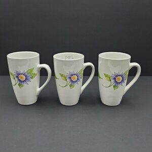 Pfaltzgraff Emma Tall Latte Mugs White Coffee Mugs Purple Pink Floral Flowers