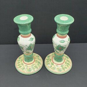 Pfaltzgraff French Quarter Candlesticks Tall Green Vines Candle Holders