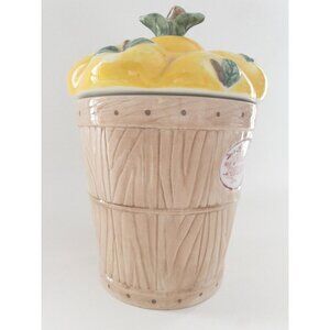 Pfaltzgraff Golden Delicious Apple Basket Ceramic Cookie Jar 11" Dishwasher & Mi
