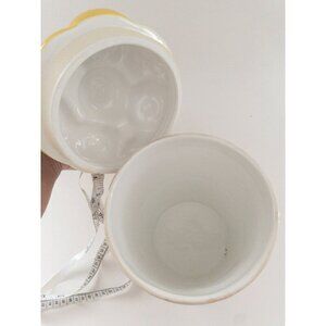 This ceramic cookie jar, designed by Pfaltzgraff, features a charming golden delicious apple motif. Its dishwasher and microwave-safe properties ensure easy maintenance.