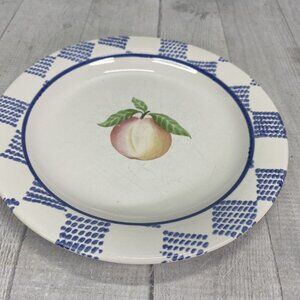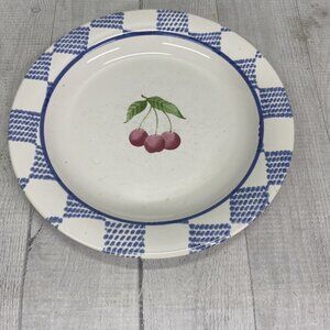 Pfaltzgraff HOPSCOTCH FRUIT Stoneware Blue Checked Rim Salad Lunch Plates Set 3