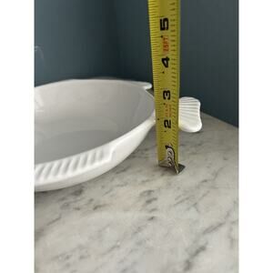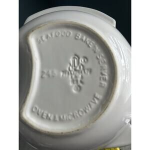 This Pfaltzgraff Heritage Stoneware Fish Seafood Bake'n Server is a vintage piece that will add a touch of charm to your kitchen. The baking dish is in the shape of a fish and is perfect for serving seafood. The dish is made of stoneware and has a white color that is easy to clean.