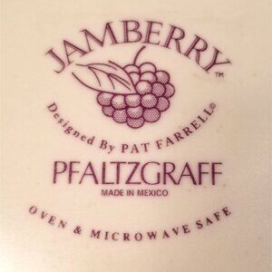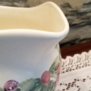 Pfaltzgraff Jamberry Large Ceramic Pitcher. Perfect for serving drinks, this 2-quart jug is both microwave and oven safe, combining style and functionality. No cracks, chips, fading, or stains.