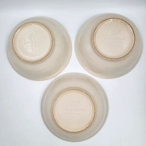 Set of 3 Pfaltzgraff Juniper cereal bowls. These feature the classic ivory stoneware with plum and teal banding. Made in the USA. Nice everyday bowls for cereal, soup, snacks, and more.