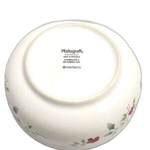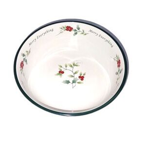 Pfaltzgraff "Merry Everything" Winterberry Christmas Bowl 7" Diameter. This lovely Christmas bowl celebrates the Holidays in many versatile ways. The bowl is microwave and dishwasher safe so it can be used for most anything, from grandma's special once a year recipe to your morning cereal. At 7" diameter and about 2.5" deep, it's not too big but not too small. Preowned with little to no use and no flaws noted.