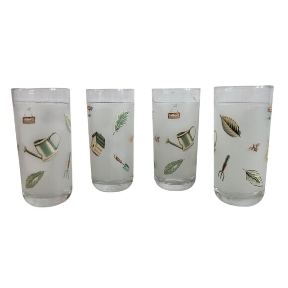 Pfaltzgraff Naturewood Frosted Water Drinking Glasses Tall Garden 16oz Set of 4 Round Bottom