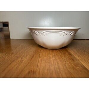 Pfaltzgraff Oval Serving Bowl White Embossed Scroll Stoneware Made in USA Dish