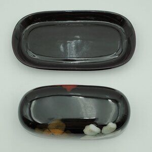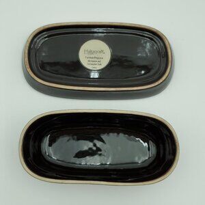 Pfaltzgraff Painted Poppies Covered Butter Dish. Excellent pre-owned condition. 7.75" x 4" x 2.75" tall. Beautiful dark brown plate and cover with white, gold, and reddish flowers. Be sure to search for my other Painted Poppies items!