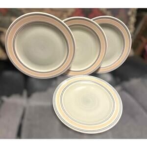 Pfaltzgraff Set 4 Key Largo 8.5" Stoneware Salad Plates Cream Yellow Green Bands
