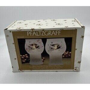 The Pfaltzgraff Set of (2) Candle Holders in White Angel design is a contemporary piece of glassware that adds a touch of vintage charm to any room. Made in China in the year 2000, these mini floating pillar candle holders feature an etched angel pattern on all-over white glass. The set includes two candle holders, each measuring 6 inches in height and 3 inches in length, making them suitable for floating candles. Packaged in box, these original vintage pieces from the Pfaltzgraff brand are a perfect addition to any home decor.