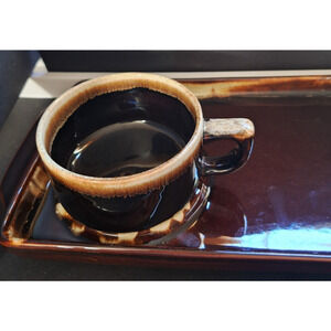 Pfaltzgraff Snack Plate 396 & Cup Gourmet Brown Drip Glaze 11 7/8"