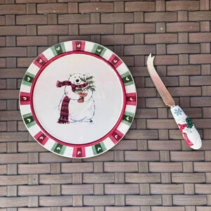 Pfaltzgraff Snow Bear Cheese Plate Tray with Sculpted Knife Slicer