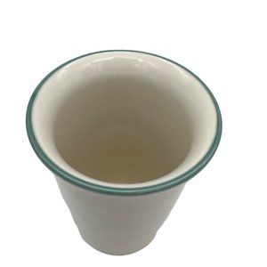 Pfaltzgraff Stoneware Juniper Utensil Holder / Flower Vase Green & Mauve Bands