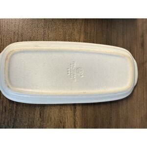 The Pfaltzgraff Stoneware Yorktowne Covered Butter Dish is a vintage piece made in the United States in the 1980s. This rectangular butter dish features a floral pattern in blue and white, typical of Pfaltzgraff's production style. The stoneware material with a matte finish gives it a unique and charming look. The lid included adds practicality to this original piece, making it both decorative and functional for serving butter in your kitchen or dining room. Perfect for collectors of vintage pottery or those looking to add a touch of nostalgia to their table setting.