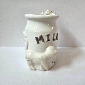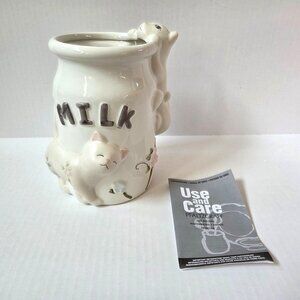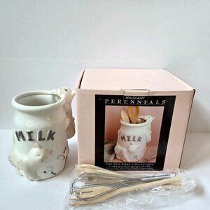 Pfaltzgraff Tea Rose Collection Cat Milk Bottle Utensil Crock w/Utensils NEW