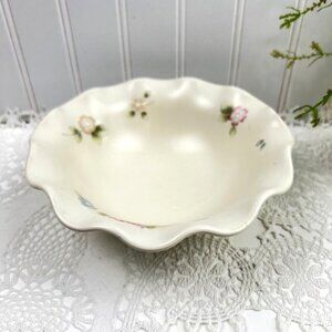 This vintage Pfaltzgraff bowl features a classic Tea Rose floral pattern on a cream background with a scalloped edge, ideal for collectors or decor.