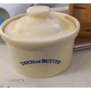 Pfaltzgraff "Touch of Butter" Butter Tub Creamy Tan Color with Blue Writing