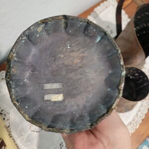 The Pfaltzgraff Village Copper Pillar Candle Holders set of 3 is a vintage decorative piece from the late 20th century, made in the United States. The candle holders feature a classic 'Village' pattern in copper, with a pierced design that adds a touch of elegance to any room. Perfect for pillar candles, these candle holders are suitable for any room and have a Christmas theme, making them a charming addition to your home decor. They have an old world feel and have wear and patina which adds to their charm.