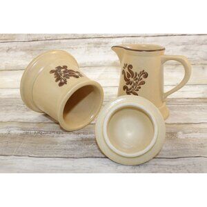 Pfaltzgraff Village Creamer 6-24 and Sugar 6-22 Set, Beige With Brown Designs.