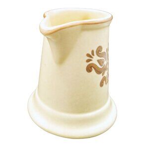 This vintage Pfaltzgraff creamer / milk pitcher has an elegant brown floral design. It is perfect for adding a touch of nostalgia to your kitchen decor.