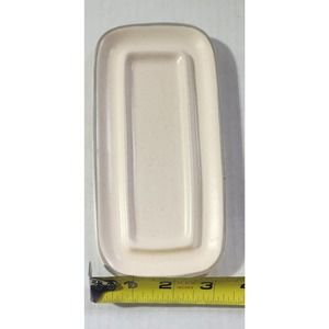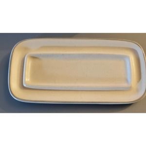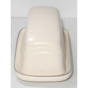 The butter dish is made of ceramic and has an impressed backstamp. It is part of the Remembrance product line and has a contemporary original design. The packaging is unboxed, but the item is in excellent condition. This butter dish is a classic example of art pottery and would be a great addition for collectors or anyone looking for a unique piece of kitchenware.