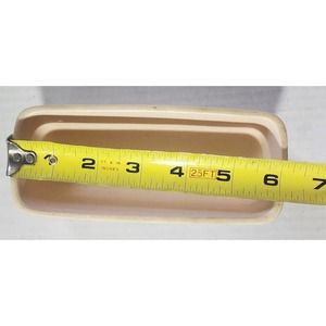 This vintage Pfaltzgraff butter dish in the Remembrance pattern, model 028, is a beautiful addition to any kitchen. It has a glossy finish with a multi-colored design and comes with a lid included. The butter dish has one compartment and a rectangular shape, making it perfect for storing butter or other small items. It is an original piece, produced in the United States during the mid-century modern time period.
