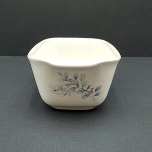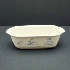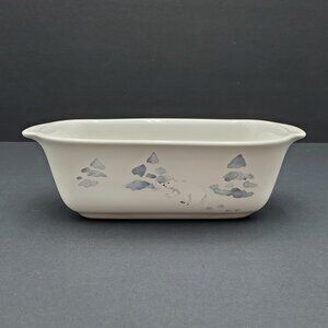 Pfaltzgraff Winter Frost Collection Small Loaf Pan Casserole Serving Dish. White dish with a lovely blue design including trees, berries, and polar bears. Excellent pre-owned condition. 8" x 4" x 2.5" high.