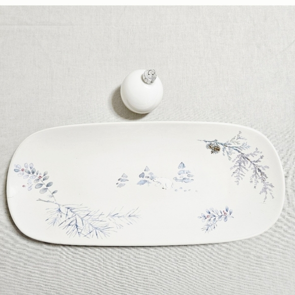 Pfaltzgraff Winter Frost Vintage Oval Platter Christmas Holiday White Blue 16"