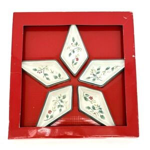 Pfaltzgraff Winterberry 09-B58-00 5 Piece Star Dish Set 2004 Vtg Christmas NEW